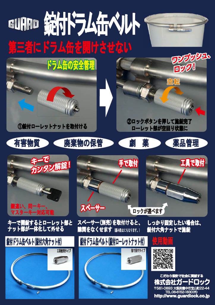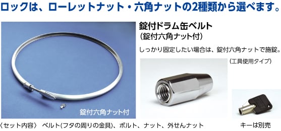 ガードロック 錠付ドラム缶ベルト 錠付六角ナット付