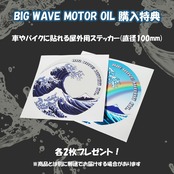 BIG WAVE MOTOR OILをご購入いただいた方にもれなくオリジナルステッカーをプレゼントいたします。