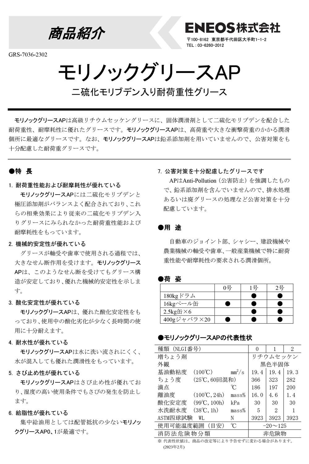 鉛系添加剤を用いていませんので、公害対策をも十分配慮した耐荷重グリースです。