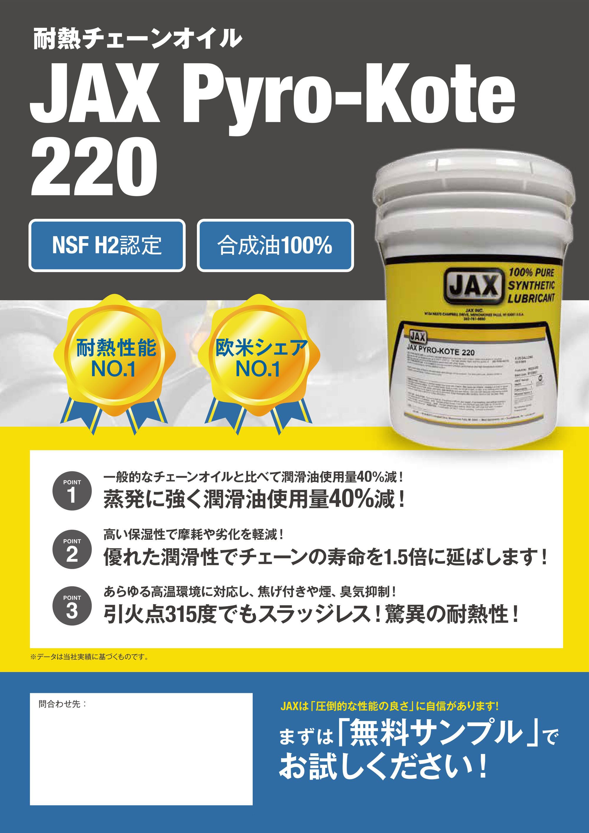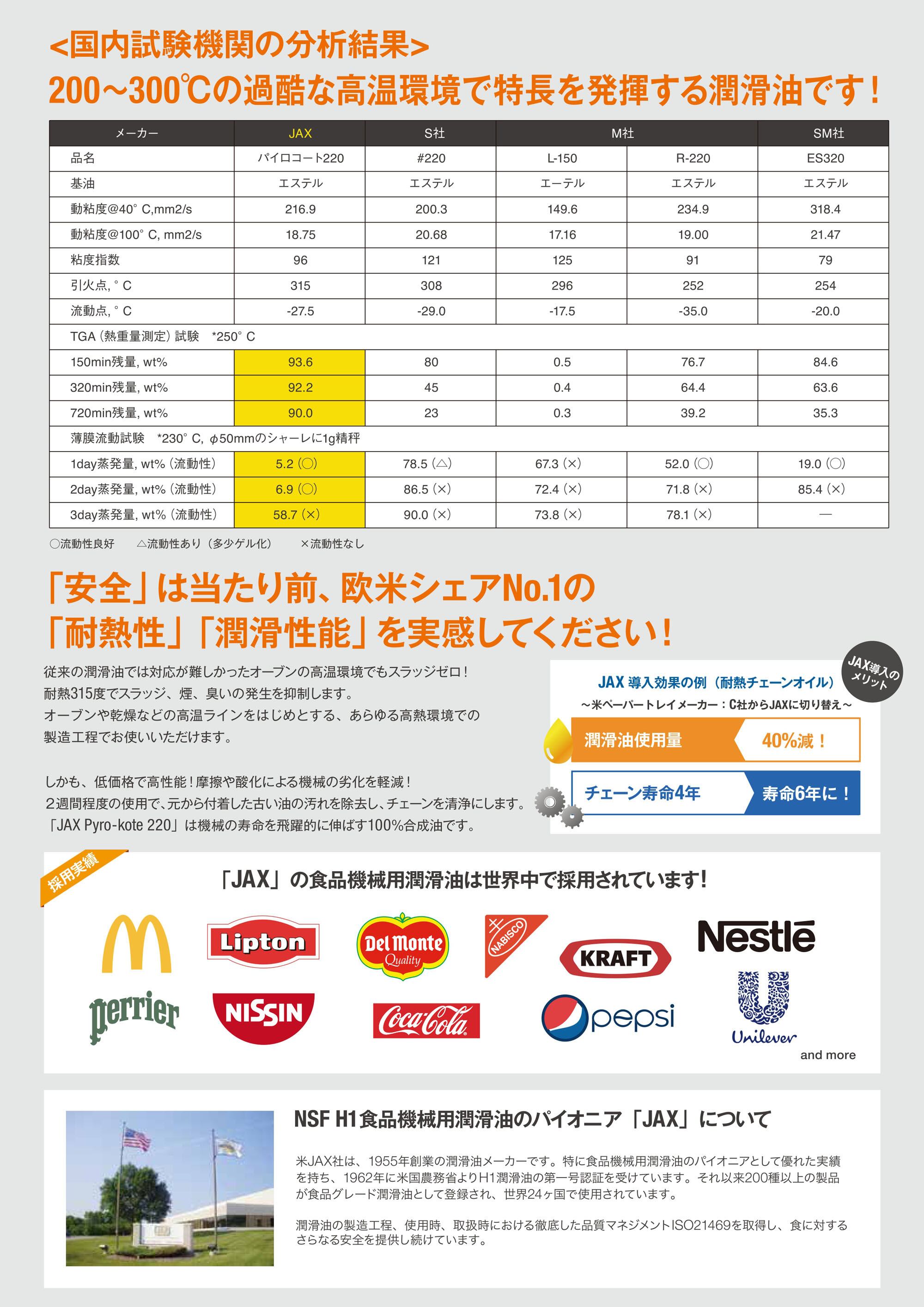 パイロコートは、独自の新エステル技術に基づいて開発された100%合成油の特殊耐熱潤滑油です。