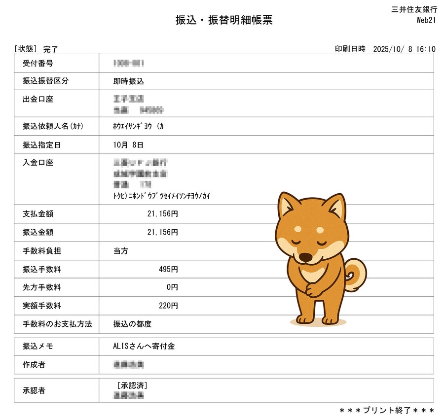 2025年9月30日までの売上を集計し、1%にあたる6,656円の寄付金が集まりました!
