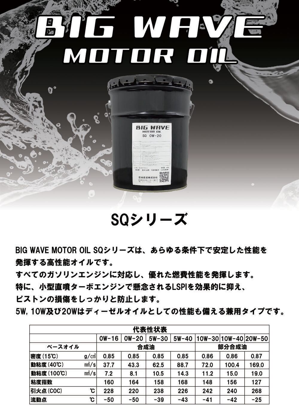 BIG WAVE MOTOR OIL SQシリーズは、あらゆる条件下で安定した性能を発揮する高性能オイルです。