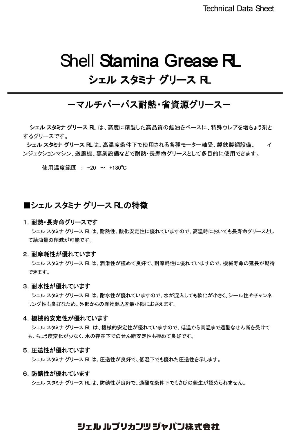 シェル スタミナ RL グリースは、高温条件下で使用される各種モーター軸受、製鉄製鋼設備、 インジェクションマシン、送風機、窯業設備等で耐熱・長寿命グリースとして多目的に使用できます。