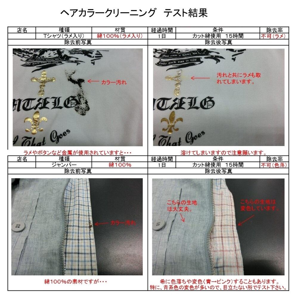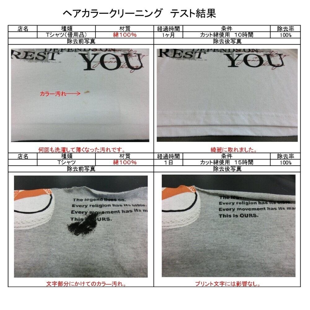*布、衣服に付着したヘアカラー汚れの除去