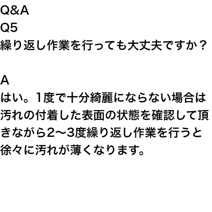4, 汚れが落ちにくい場合は再度液を塗布し、ペン先または使い古しの歯ブラシ等で軽く擦ると効果的です。液が残らないよう十分に水拭きします。