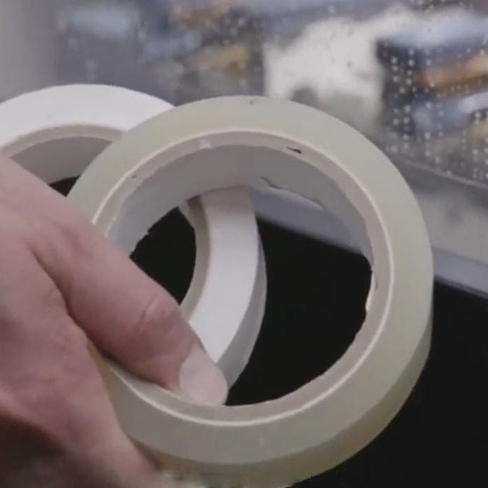 まどすけを固定する加工液侵入防止用テープ
